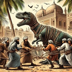 Ezután szállást indultak keresni Kaya szállodája felé, amikor megláttak néhány embert egy megkötözött dinoszauruszt vezetni, aki előtt vörösre festették az utat. A kalandorok megtudták, hogy a dínó egy versenydínó, aki esélyes, hogy megnyerje a tíznaponta megrendezendő dínó versenyt. A beszélgetést azonban egy hatalmas üvöltés szakította meg, amikor is a dínó elszabadult, elszakítva a köteleit. A kalandorok visszahőköltek, bár harcra kész voltak, nem akartak feltétlenül beleavatkozni a konfliktusba. Teemon egy túlvilági suttogással próbálta diszkréten visszafogni a szörnyeteget, ám az csak dühösebb és dühösebb lett. Két szolga is súlyos sérüléseket szenvedett, amíg úgy döntöttek, hogy segítenek megfékezni a fenevadat. Először Morgana, majd Mayla is egy kötelet dobott a dínóra. Bár Riconak nem sikerült a kötelet elég erősen fognia, s Teemon ijedtségében kővé dermedt, Esmeraldának sikerült a szörnyeteg nyaka köré dobni egy kötelet. A dínó egy rándulással Morgana kivételével mindenkit a földre rántott, de támadni még mindig nem volt képes. Morgana immár két kötelet fogva szorította a dínót, végül Riconak Teemon segítségével sikerült elég erősen megragadnia a kötelet, így egy idő után a dínó kifáradt és feladta a harcot. A dínó tulajdonosa megköszönte, hogy segítettek lenyugtatni Csonttörőt (a dínót), s cserébe megígérte, hogy szól Ifannak, aki egy kofár király, néhány szót az érdekükben, hátha kapnak egy kis kedvezményt amikor dínókat szeretnének venni.