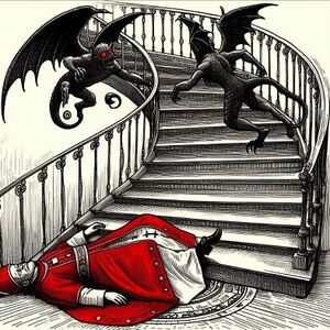 1476 Targoviste, Wallachia - Wallachia érseke arról prédikált, hogy egyes tébolyodott személyeknek milyen borzasztó látomása volt, amikor azon a napon, pontosan egy éve megfenyegette őket az Ördög, de mindenki láthatja, hogy a történet csak egy szenzációhajhász nevetséges história. Az érsek még be se tudta fejezni a prédikációját, véreső és leírhatatlan, elfajzott magzatok kezdtek el hullani az égből, földrengés kíséretével felgyullad a katedrális, a tűzből ismét egy férfi arca rajzolódott ki: