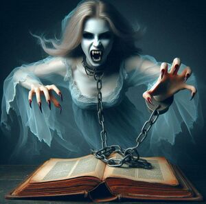 Ezen a ponton Manuela megérezte, hogy a gólem ereje már hatástalan, és menekülni kezdett. Lyri és Jamāl egyszerre ugrottak rá a könyvre, és megpróbálták visszahúzni a kétségbeesett szellemet, de hiába. Kicsúszott a kezük közül, és a kísértet fülsiketítő rikácsolás és hörgés közepette átszáguldott a plafonon, darabokra szakítva a láncot és sajnos a könyvet is.